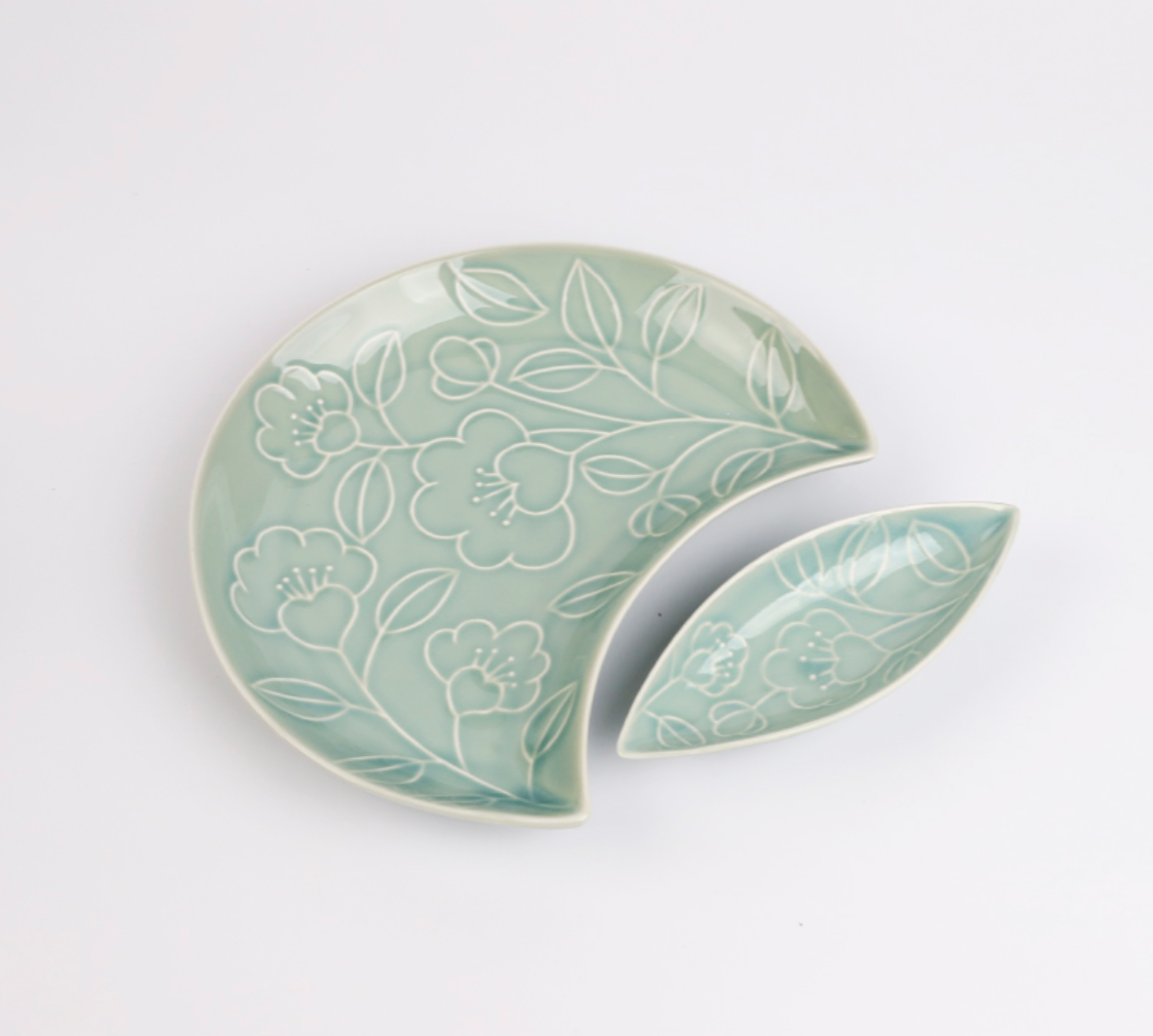 Goryeo[Korean] Celadon Half Moon plate 2pcs Set