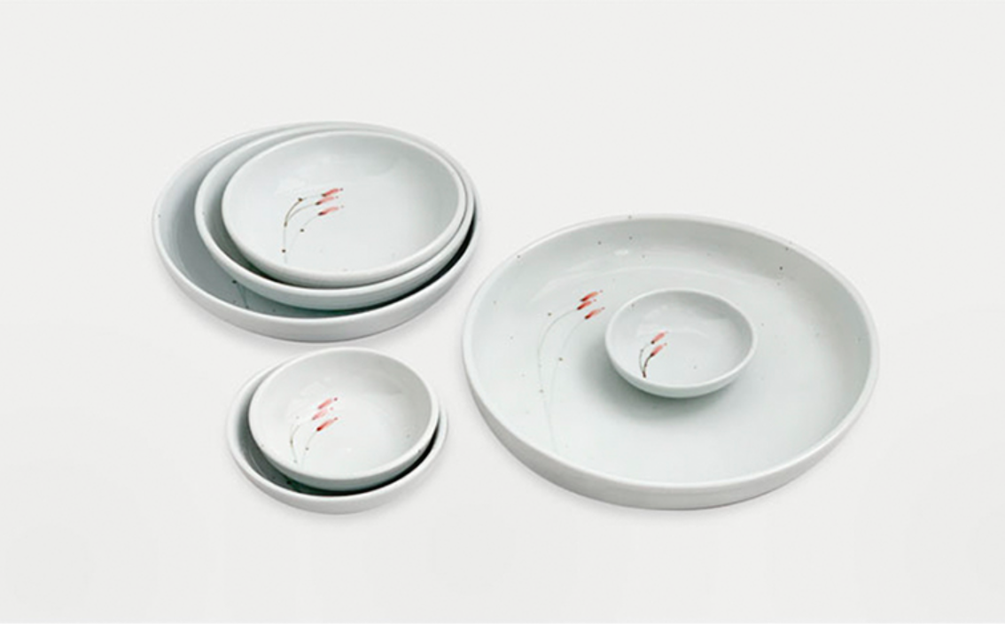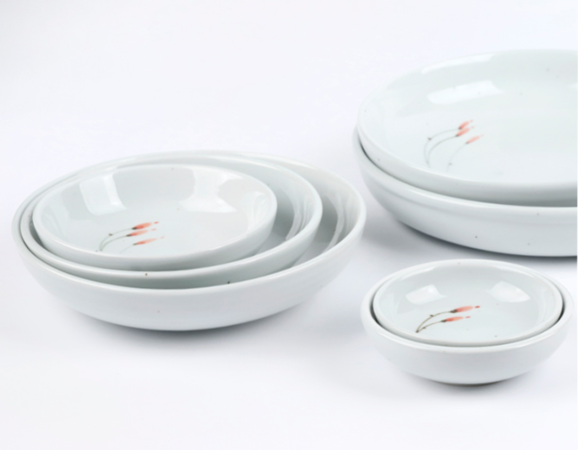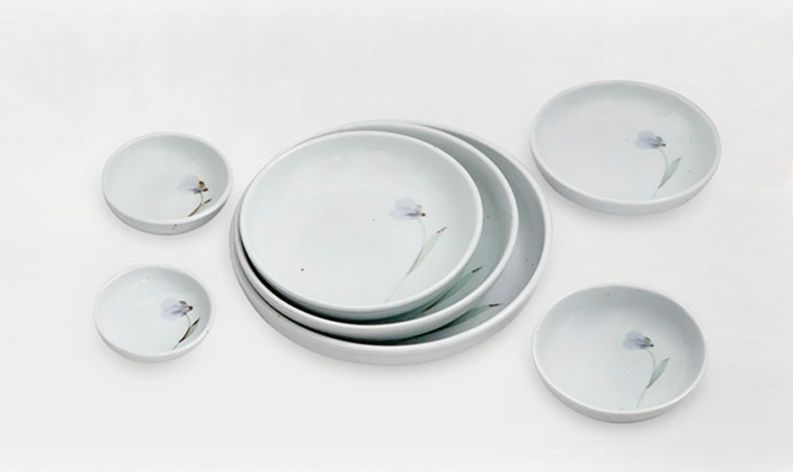 Goryeo[Korean] White porcelain Flower Convex Bowl 7pcs Set